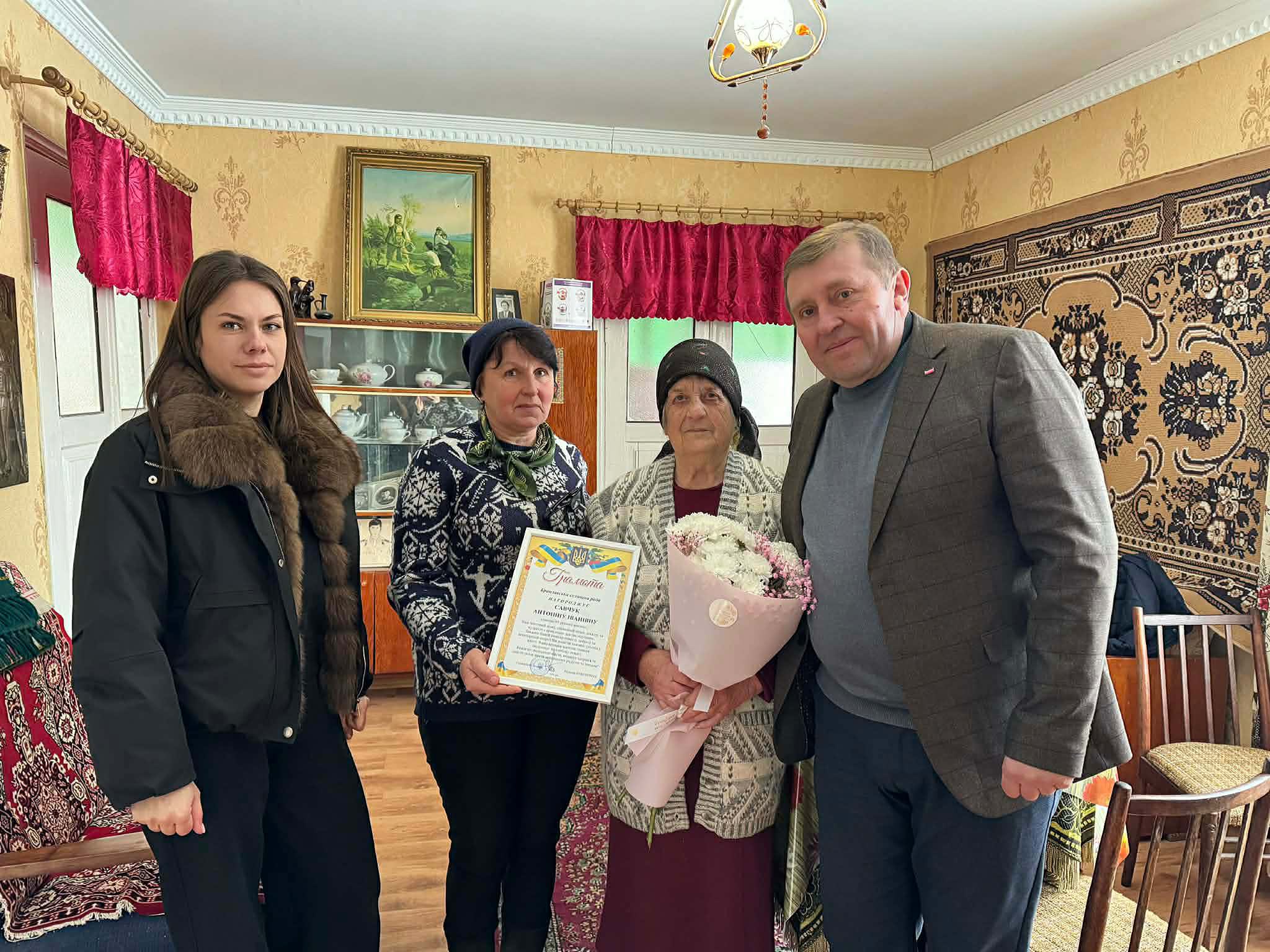 Зі щирими побажаннями до іменинниці завітали селищний голова Микола Кобринчук, директор КУ «Центр надання соціальних послуг» Тетяна Олійник та соціальна робітниця Наталія Валькова, яка щоденно опікується пані Антоніною.