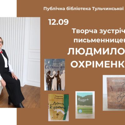 12 вересня у Тульчинській громаді відбудеться особлива літературна подія. У Публічній бібліотеці Тульчинської міської ради о 16:00 жителі громади зможуть зустрітися з відомою письменницею Людмилою Охріменко, авторкою «Оскара». Повідомляють на сторінці Тульчинської публічної бібліотеки. Під час заходу відвідувачі матимуть унікальну можливість поспілкуватися з авторкою, дізнатися більше про її творчість та придбати книги з автографом. Окрім […]