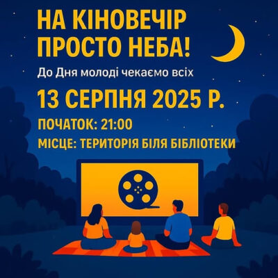 13 серпня Тульчинська публічна бібліотека запрошує жителів та гостей громади на кіновечір просто неба з нагоди Дня молоді. Початок заходу — о 21:00 на території біля бібліотеки. Глядачі зможуть насолодитися переглядом художнього фільму «Люксембург, Люксембург» у затишній літній атмосфері під відкритим небом. Організатори радять прихопити плед, зручне крісло або каремат для більшого комфорту. Тульчинська публічна […]