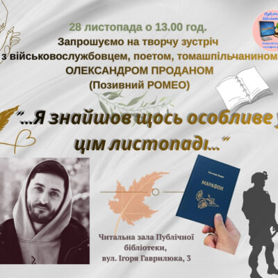 У Публічній бібліотеці Томашполя відбудеться творча зустріч з військовослужбовцем та поетом Олександром Проданом