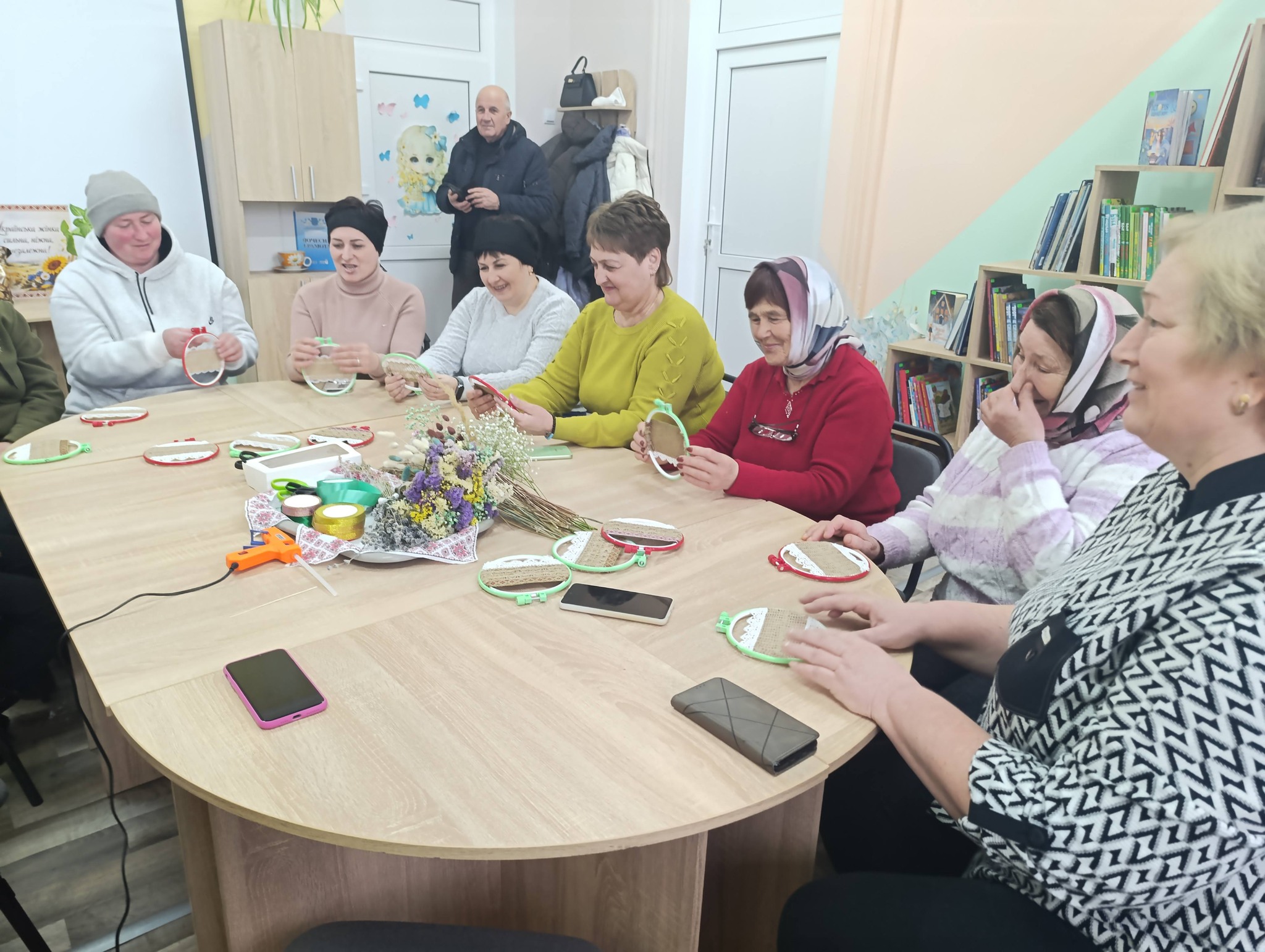Під час зустрічі жінки ділилися спогадами про своїх рідних — синів, чоловіків і братів, які загинули на війні або вважаються безвісти зниклими. Після спілкування учасниці долучилися до творчої роботи, створюючи декоративні композиції та підтримуючи одна одну.