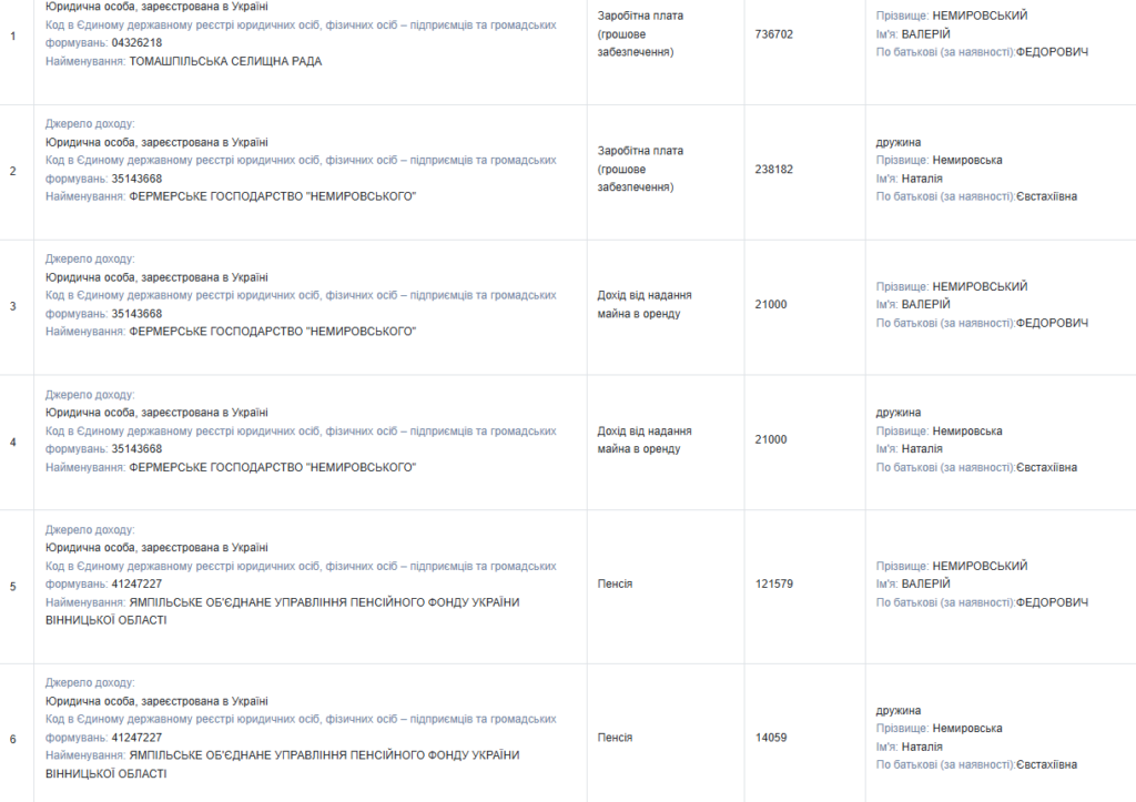 Дружина отримала 238 182 грн зарплати у фермерському господарстві «Немировського».