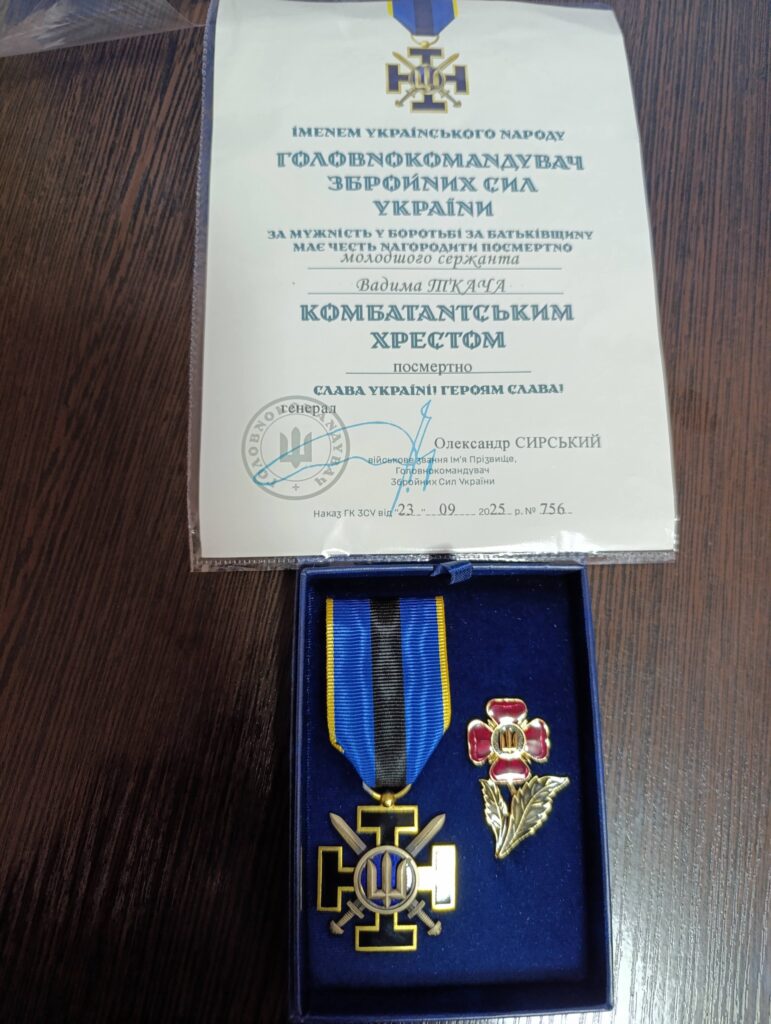 Нагороду вручили голова Городківської громади Олена Резнік та начальник відділення рекрутингу та комплектування 2 відділу Тульчинського РТЦК та СП, майор Дмитро Тирса. Ця церемонія стала ще одним підтвердженням того, що подвиг Вадима Ткача не забутий, а його ім’я назавжди вписане в історію громади та України.