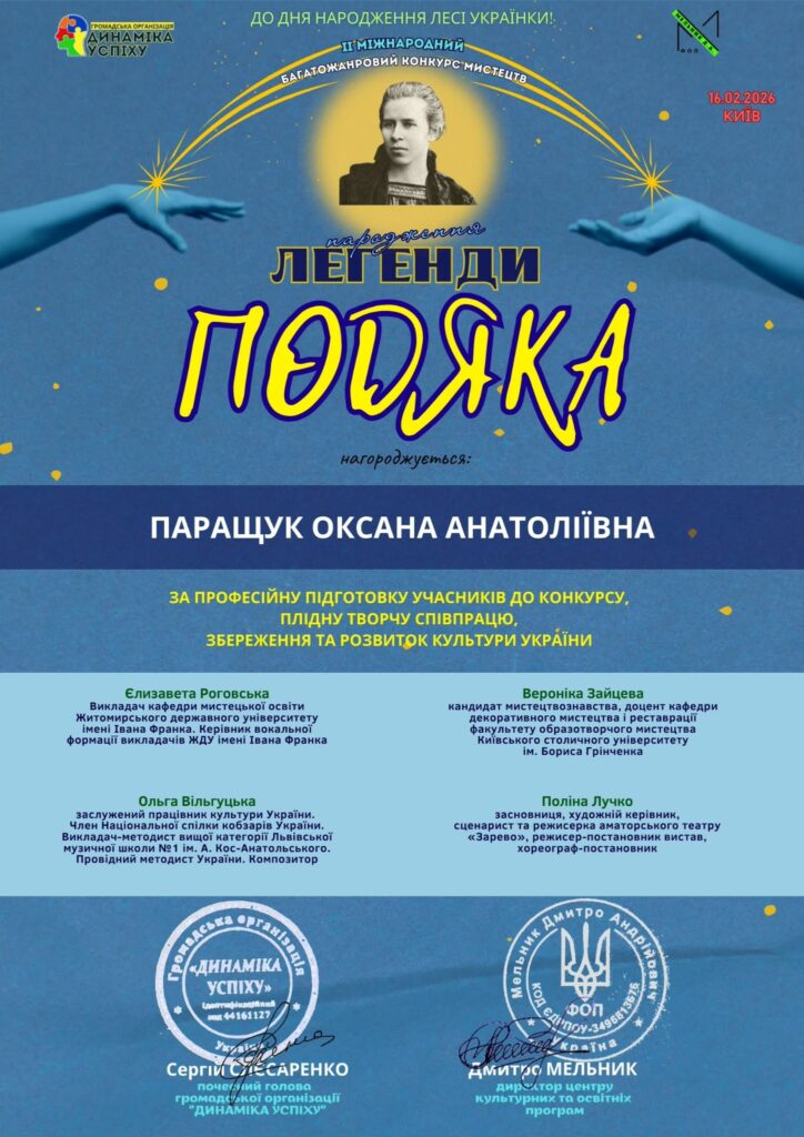 ІІ Міжнародний багатожанровий конкурс мистецтв «Народження легенди» присвятили дню народження поетеси Лесі Українки. У ньому беруть участь творчі колективи та виконавці з різних регіонів і країн.