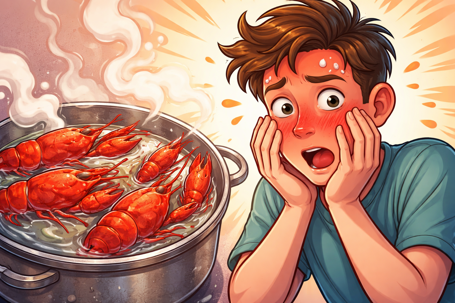 Образ походить із побутових спостережень: варені раки стають яскраво-червоними. Саме так виглядає людина, яка раптово опинилася в незручній ситуації — обличчя «заливається» рум’янцем, видаючи емоції без слів.