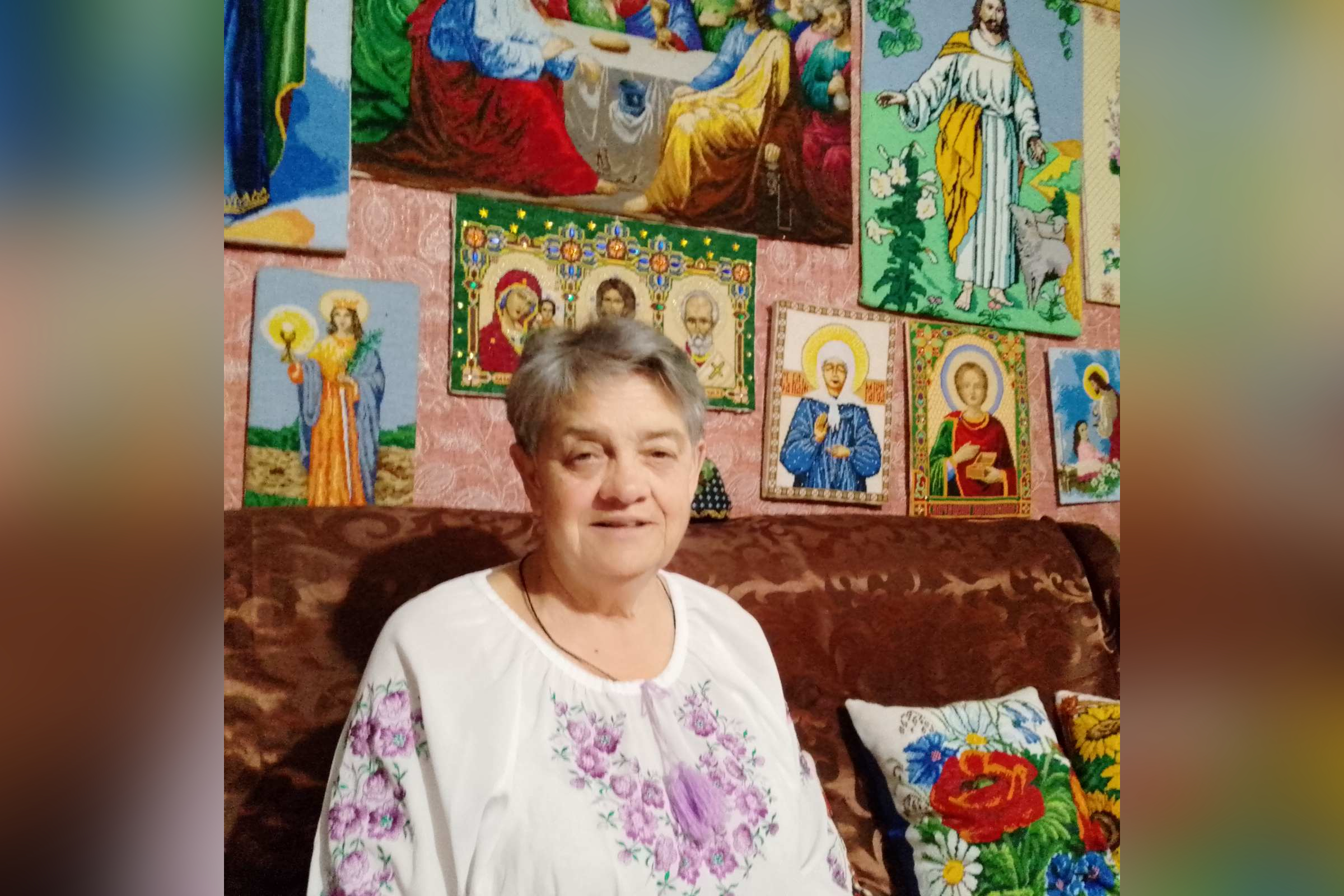 Її оселя більше схожа на маленький музей народного мистецтва: стіни прикрашають десятки вишитих картин, рушників, ікон, серветок та подушок. У кожній роботі — роки праці, жіночий біль, материнська любов і незламна віра.