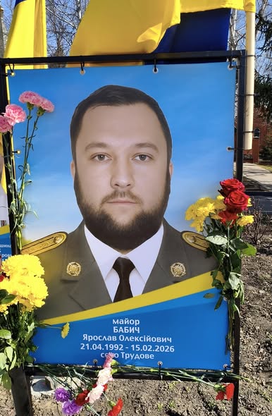 На Алеї Слави з’явився банер із ім’ям та світлиною майора Ярослава Бабича (21 квітня 1992 — 15 лютого 2026). Він служив начальником штабу — заступником командира батальйону територіальної оборони.