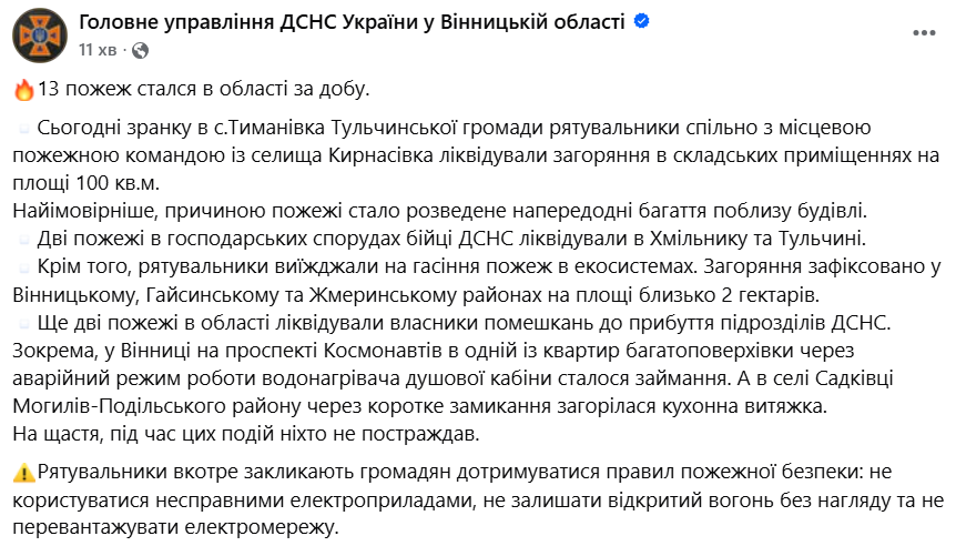 Про це повідомляє ДСНС у Вінницькій області.