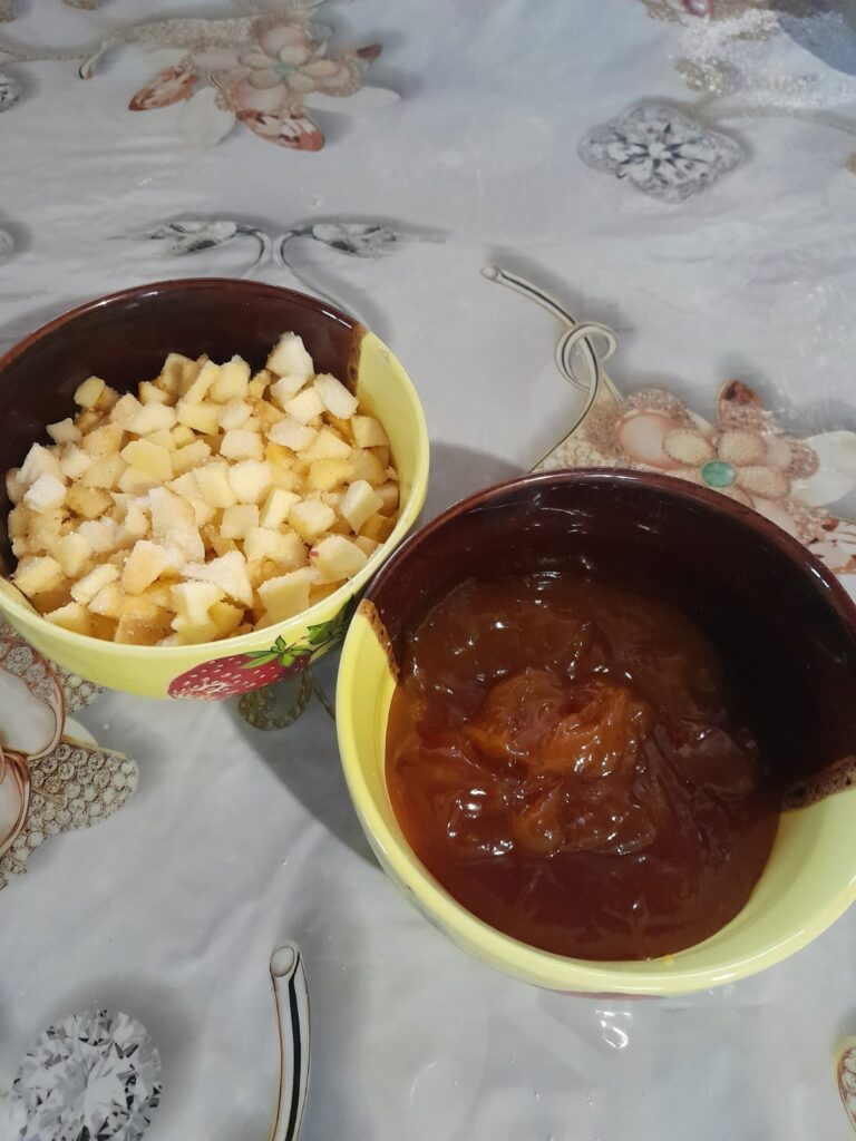 Для тіста використовують базові інгредієнти: борошно, молоко, яйця, цукор, масло та дріжджі. Спочатку готують опару, далі замішують м’яке тісто й залишають його підходити. Після цього формують рогалики з начинкою — тушкованими яблуками з корицею або повидлом — і випікають до рум’яної скоринки.