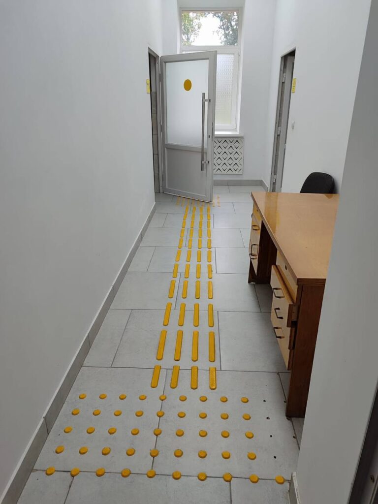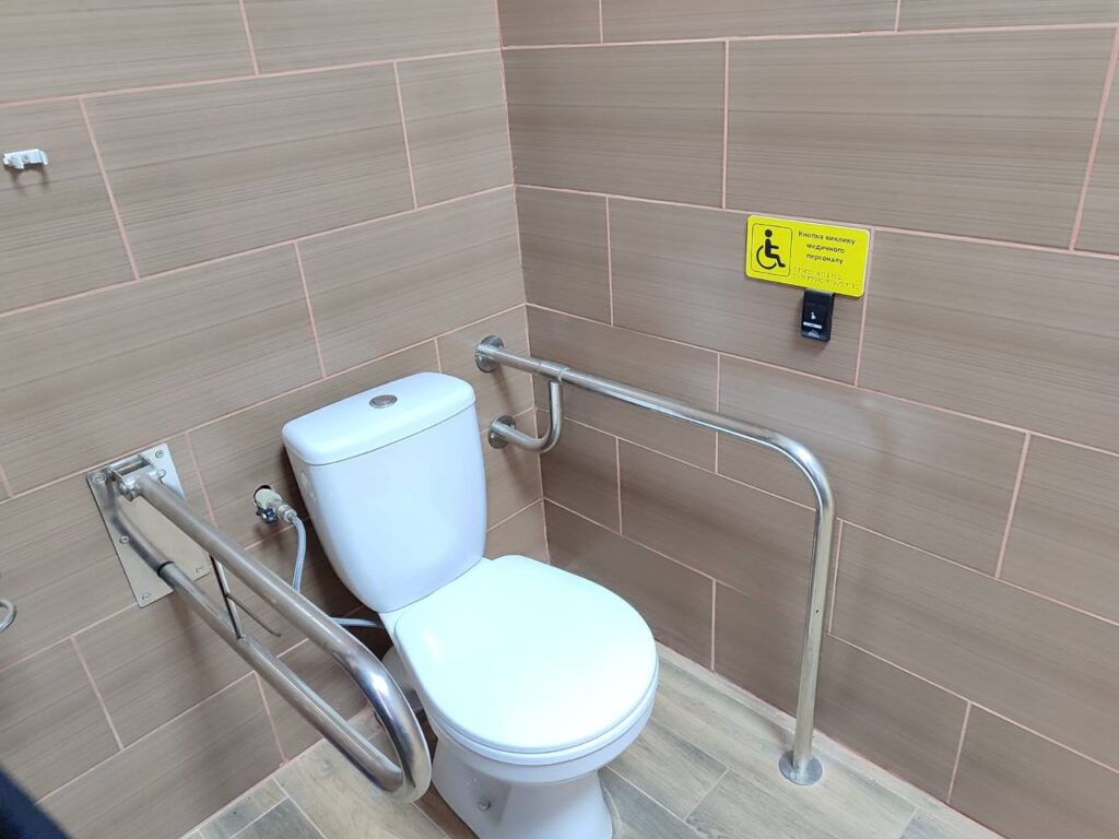 У відділення лікарні доступ можливий через безбар’єрні входи. Підлога коридорів обладнана тактильною плиткою, а назви кабінетів нанесені шрифтом Брайля. Вбиральні адаптовані для людей, що пересуваються у кріслах колісних. В гінекологічному відділенні встановлено гінекологічне крісло з електропідйомником для огляду жінок.