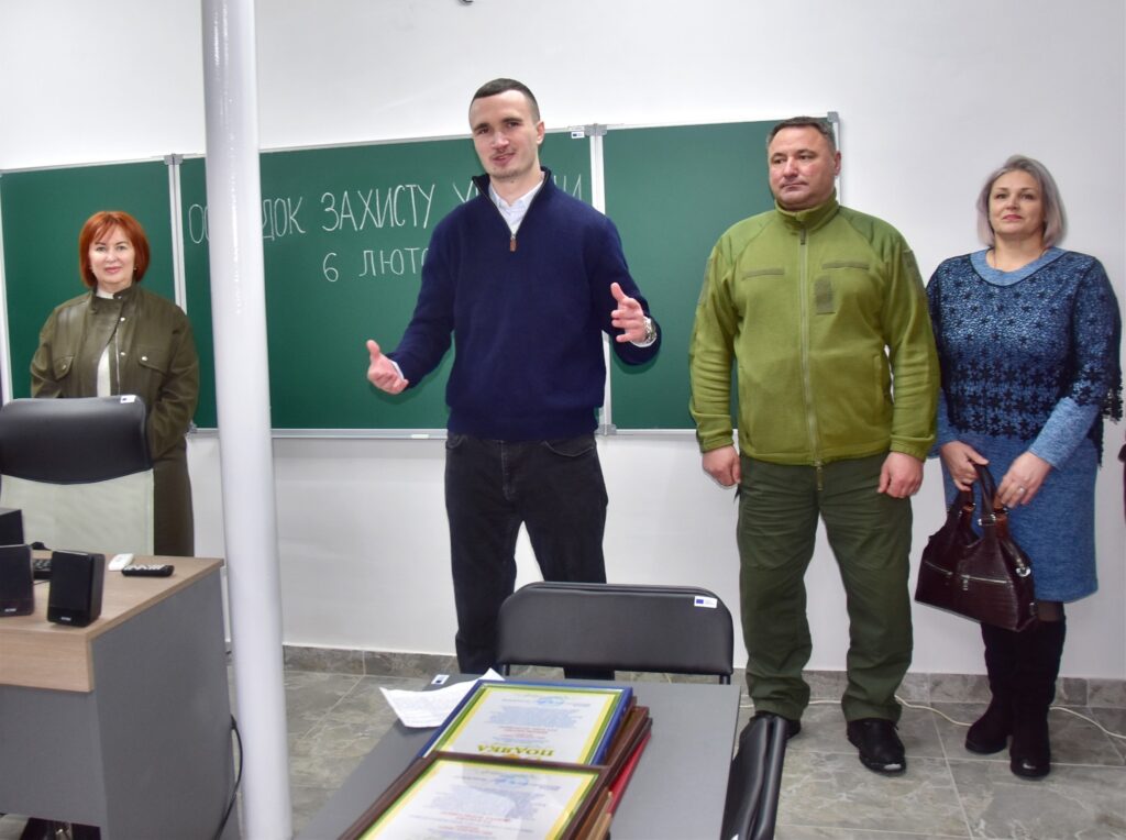 Олександр Гаврилюк підкреслив важливість сучасної матеріально-технічної бази у формуванні безпекових компетентностей та вручив подяки педагогам, батькам і підприємцям, які долучилися до створення кабінету. Також він передав символічний подарунок — розмальовану гільзу як нагадування про ціну свободи.