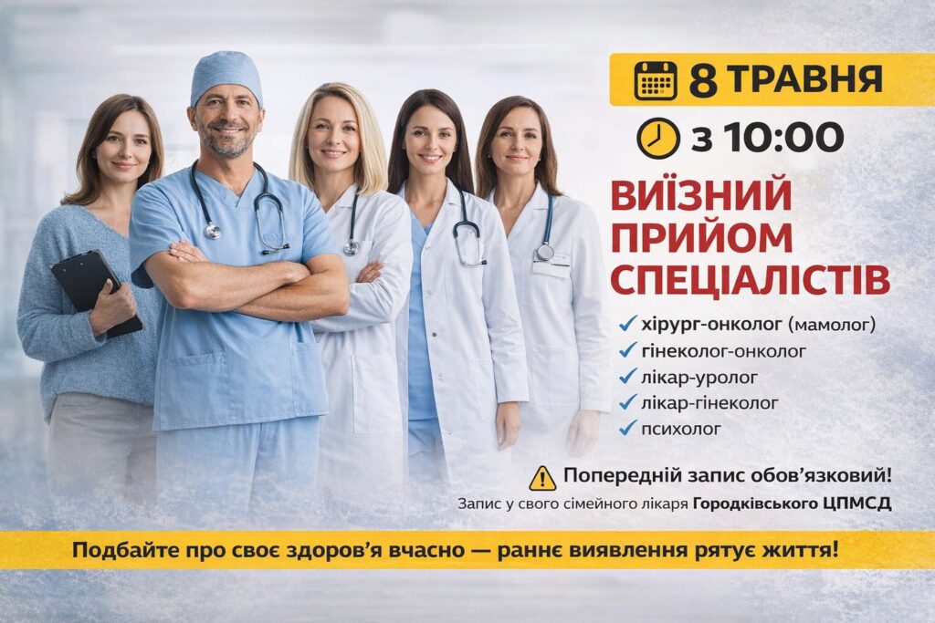 У п’ятницю, 8 травня, у Городківській громаді проведуть виїзний прийом лікарів різного профілю. Консультації надаватиме спеціалізована бригада, зокрема онкологи та психолог. Потрапити на прийом можна лише за попереднім записом через сімейного лікаря.