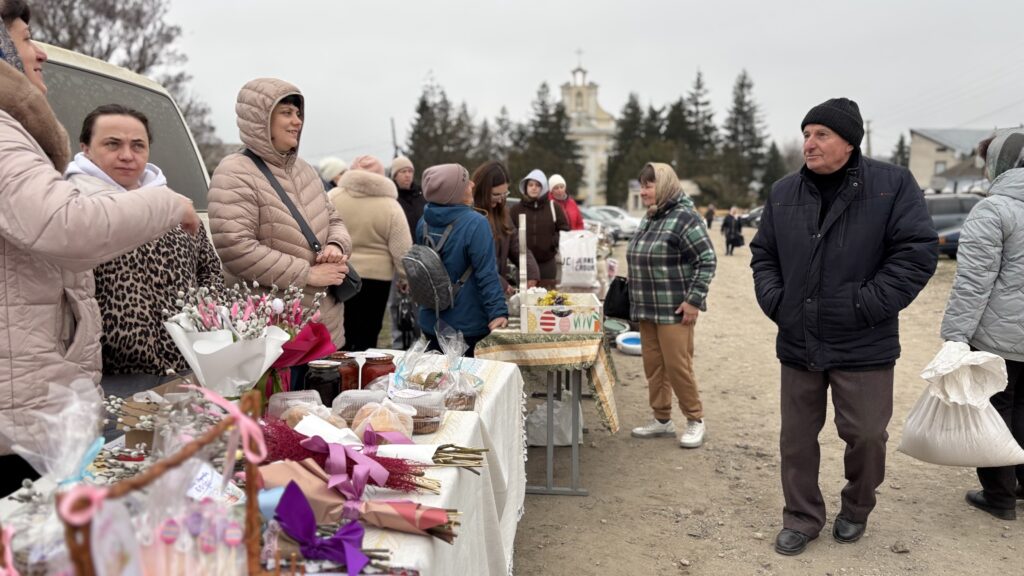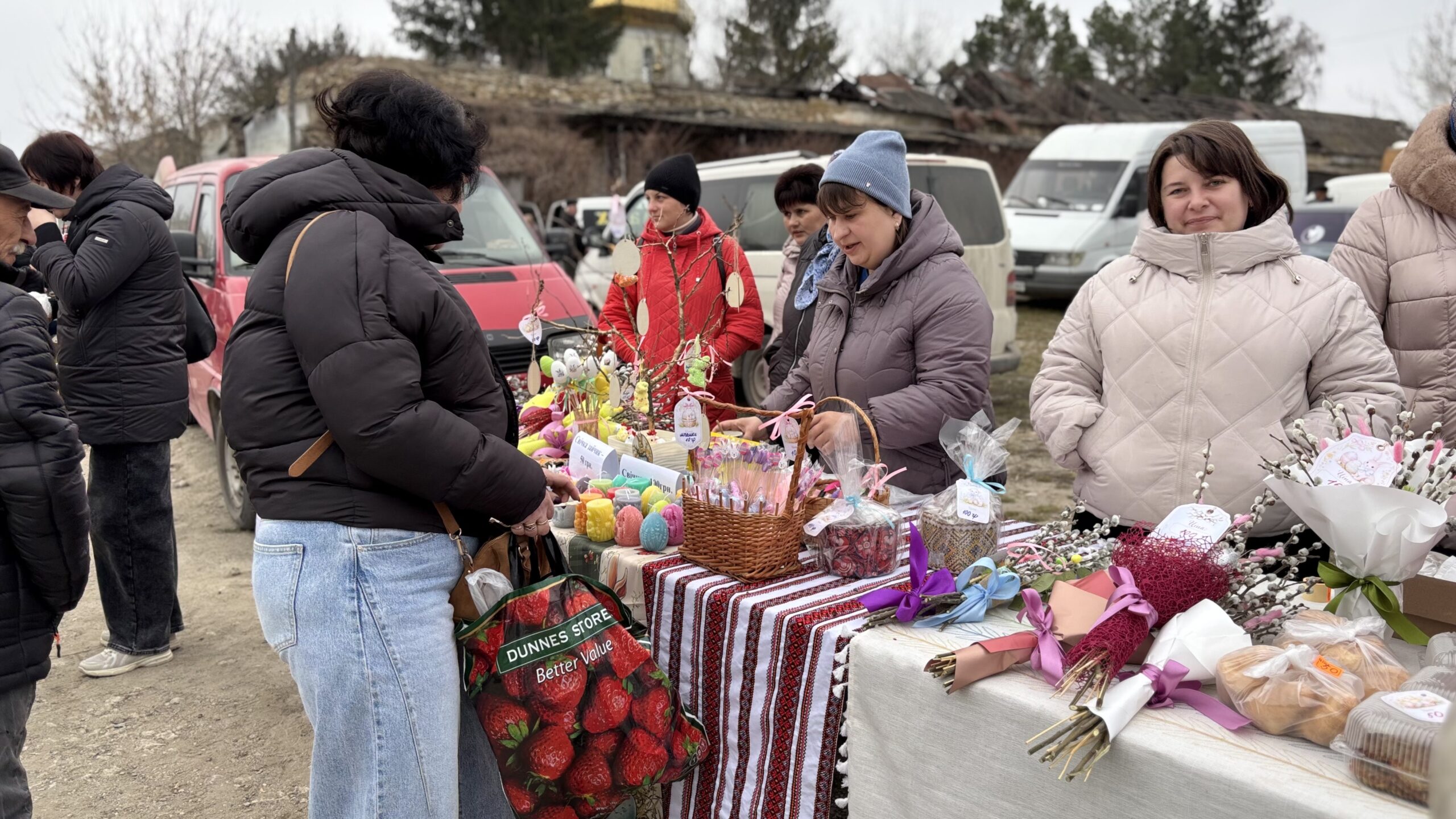 Місцева жителька Тетяна розповідає, що такі ярмарки вже стали звичними для громади: «Кожен раз люди з задоволенням сюди приходять. Я сьогодні придбала хліб, паску і великодню композицію».