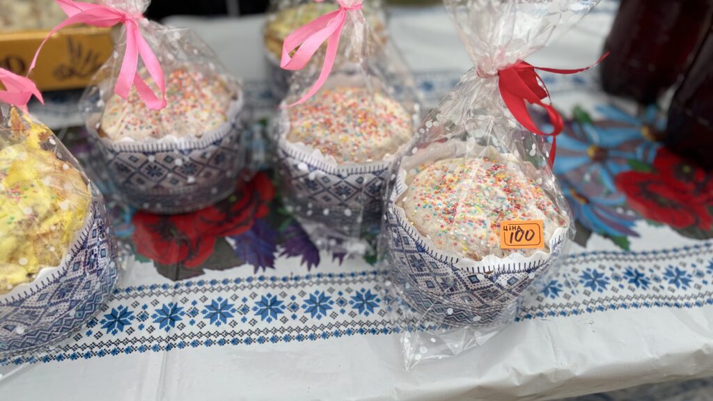 Серед найбільш затребуваного — великодня випічка. Паски готують за домашніми рецептами, і їх активно купують відвідувачі.