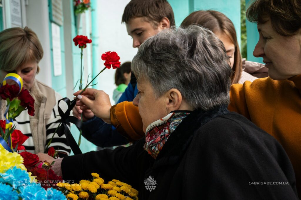 Право відкрити Меморіальну дошку надали батьку та сестрі Захисника. Під час церемонії лунали слова вдячності й скорботи, а після хвилини мовчання присутні поклали квіти до місця пам’яті.