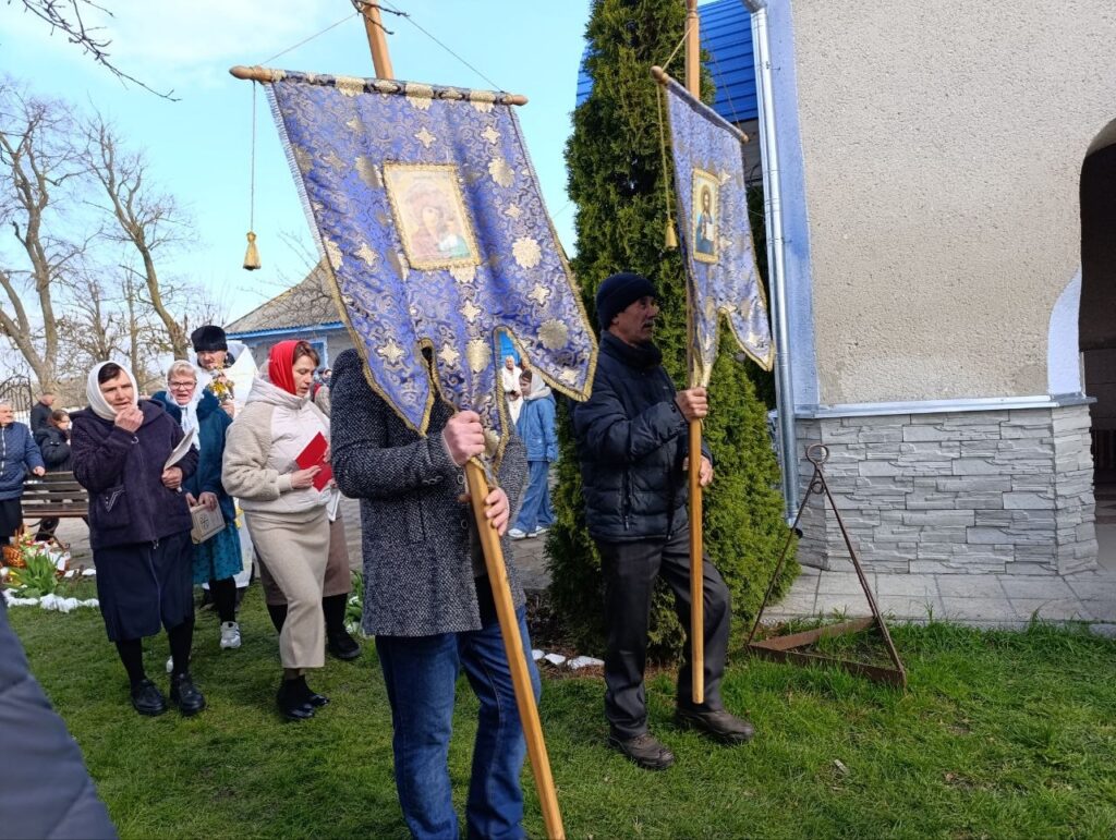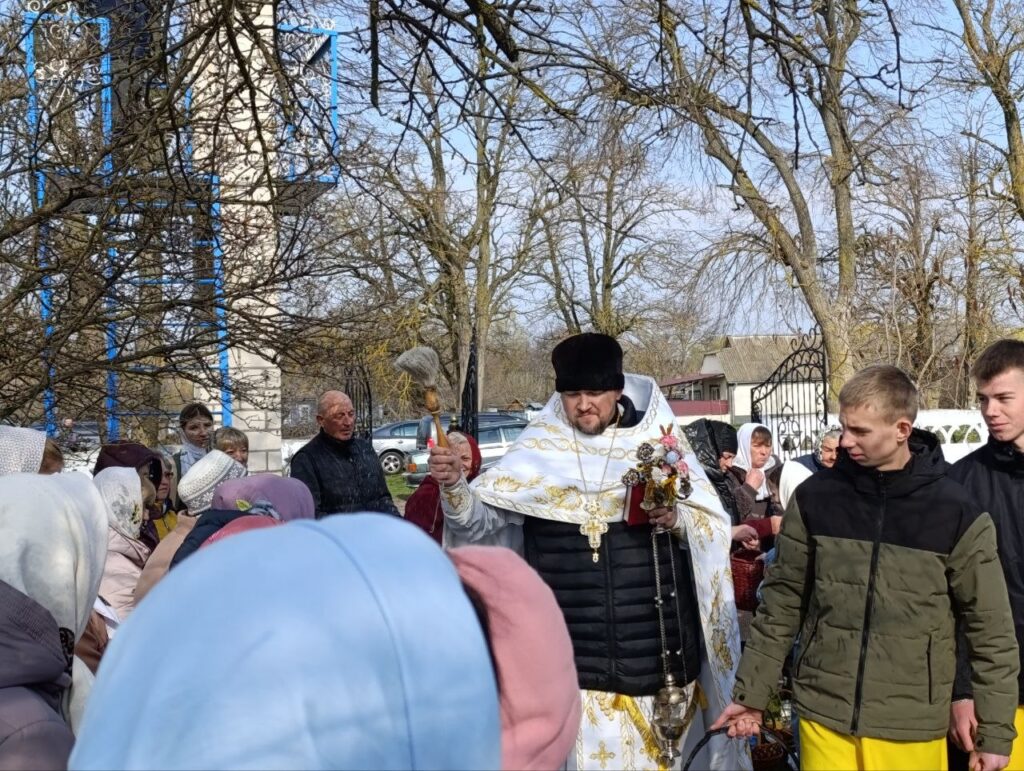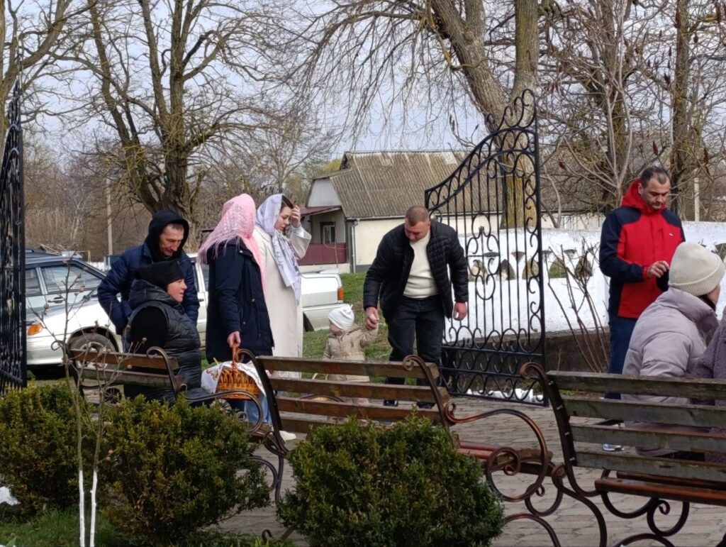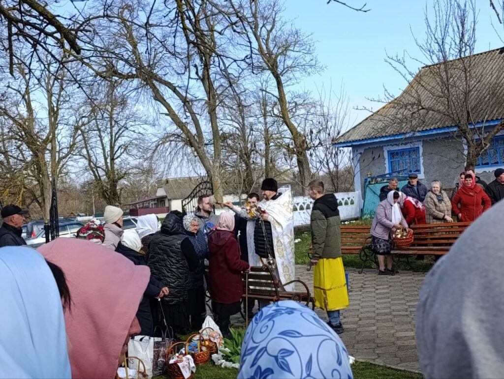 Час настав. Виходячи з храму кожен з собою ніс те саме внутрішнє тепло, яке не зможе розігнати ніякий ранковий холодний вітерець. Отець Святослав разом зі своїми помічниками привітав мешканців зі світлим святом. Окропленими свяченою водою були всі: дорослі, діти, святкові кошики з пасочками – сміх розлтвся хвилею по церковному подвір’ї.