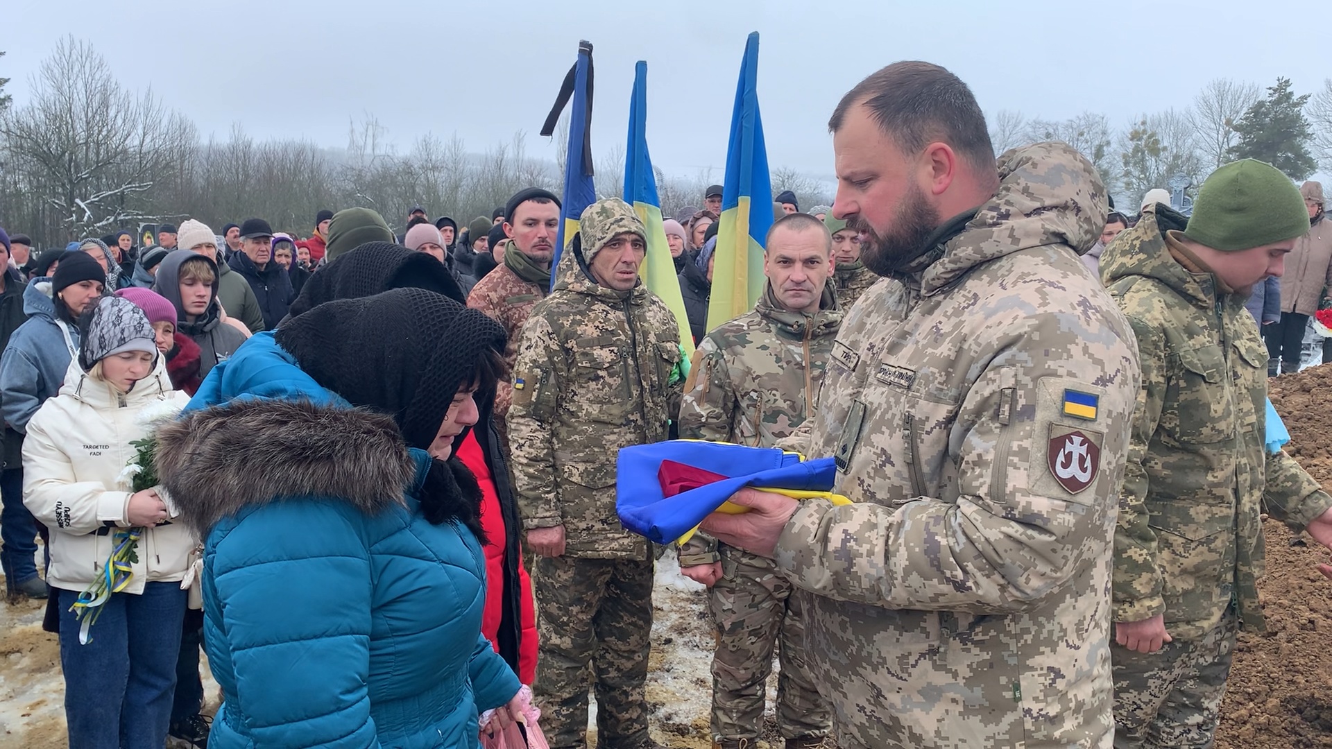 Особливо зворушливим моментом стало вручення державного прапора матері Героя. Майор Дмитро Тирса передав Анжелі Василівні синьо-жовте полотно та військові нагороди сина. Поруч, схиливши голови, стояли батько Лев Петрович та сестра Альона.