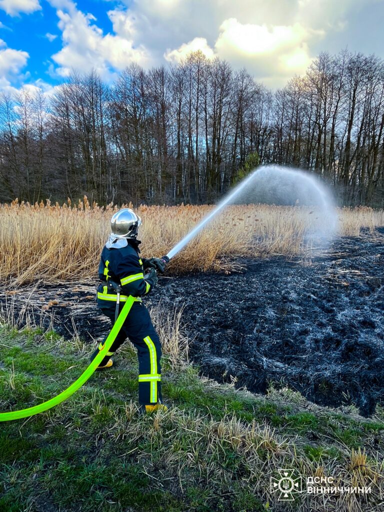 У Вінницькому та Тульчинському районах зафіксували кілька пожеж на відкритих територіях. Вогонь охопив площу понад 2 гектари, загоряння оперативно ліквідували рятувальники. У всіх випадках причиною стала людська необережність.
