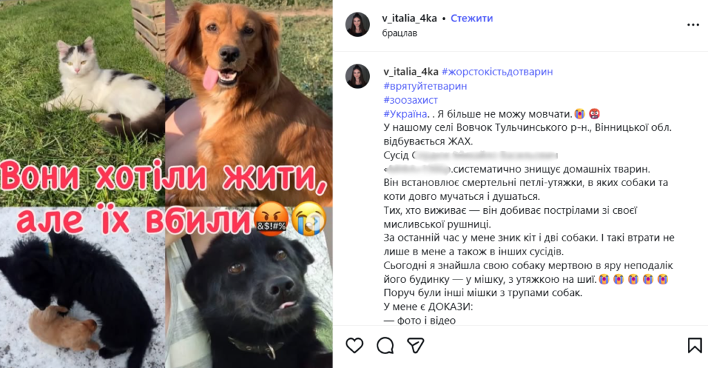 «Є докази і свідки» — у Вовчку на Тульчинщині заявили про вбивства домашніх тварин