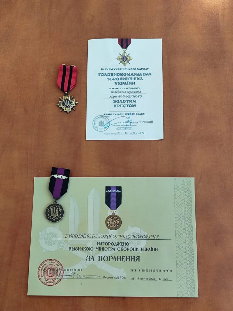 Нещодавно заступник командира військової частини А7048 підполковник Артем Смелов вручив молодшому сержанту Юрію Бурдейному, жителю Городківської громади, відомчі нагороди – «Золотий Хрест» та відзнаку «За поранення» від імені Головнокомандувача Збройних сил України та Міністра оборони. Повідомляє Тульчинська районна державна адміністрація.