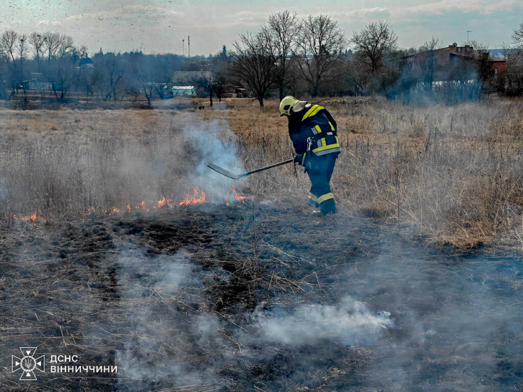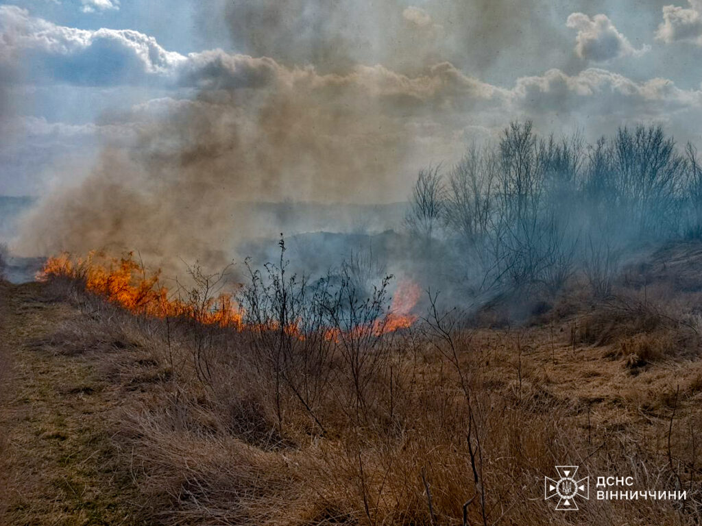 Рятувальники ліквідували дев’ять пожеж в екосистемах області. Суха рослинність горіла у Вінницькому, Жмеринському, Тульчинському та Могилів-Подільському районах.