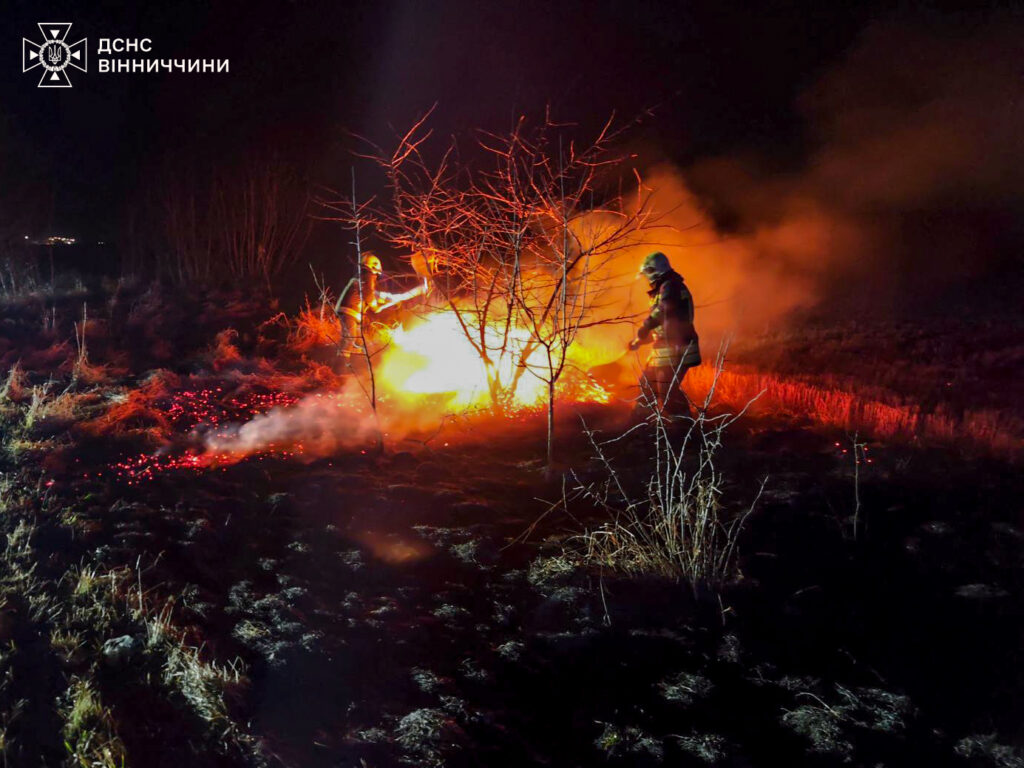 На Вінниччині за добу сталося 11 пожеж, більшість із них — на відкритих територіях. Загоряння фіксували і в Тульчинському районі, де горіла суха рослинність.